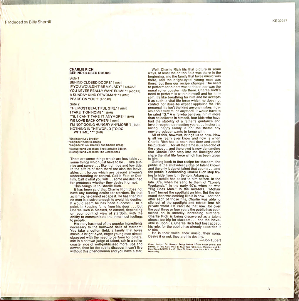 RICH, CHARLIE - Behind Closed Doors [1973] USED