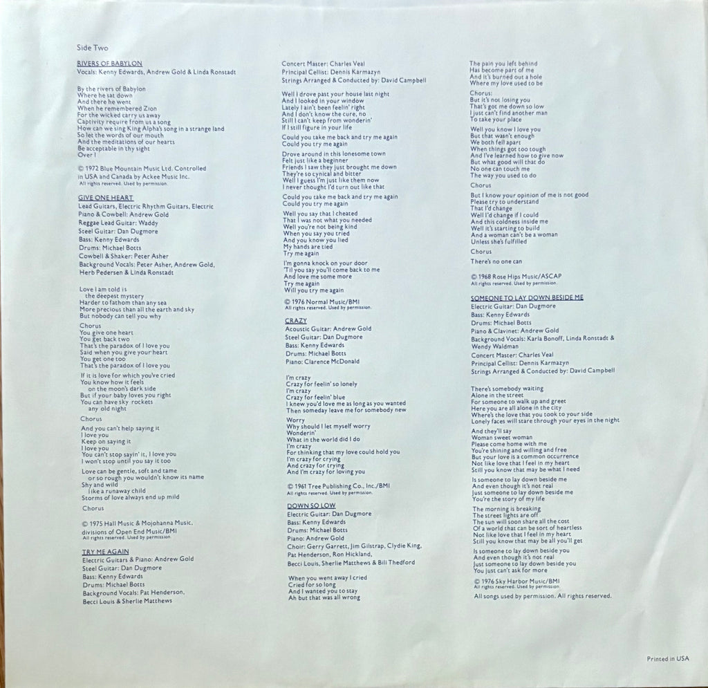 RONSTADT, LINDA - Hasten Down the Wind [1976] USED