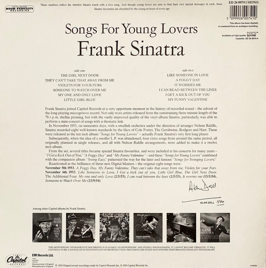 SINATRA, FRANK - Songs For Young Lovers [1984] MONO reissue. Like New. USED